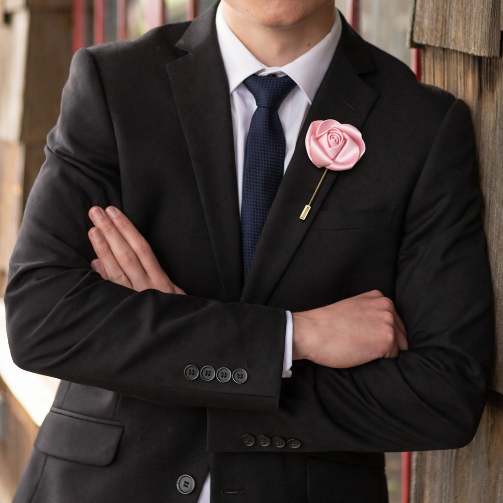 Lapel Pins for Men, Blush Pink Satin Lapel Pin Groom Boutonnieres for Wedding/Dance/Party, Men Lapel Pins for Suits Satin Flower Corsage